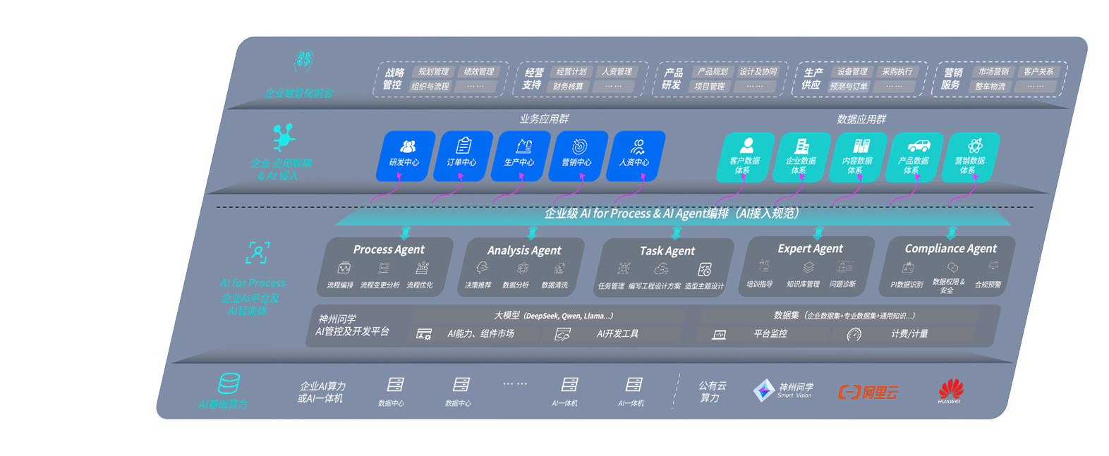 端到端的一站式AI工作空间深度融合了从企业战略规划到日常经营的全流程业务板块,,,,定向解决车企内部领域多、、、、部门多、、、链条长、、、场景碎片化等难题,,,支持车企快速构建以AI为核心的生产力写作体系,,,实现任务执行与AI能力的无缝集成与交互